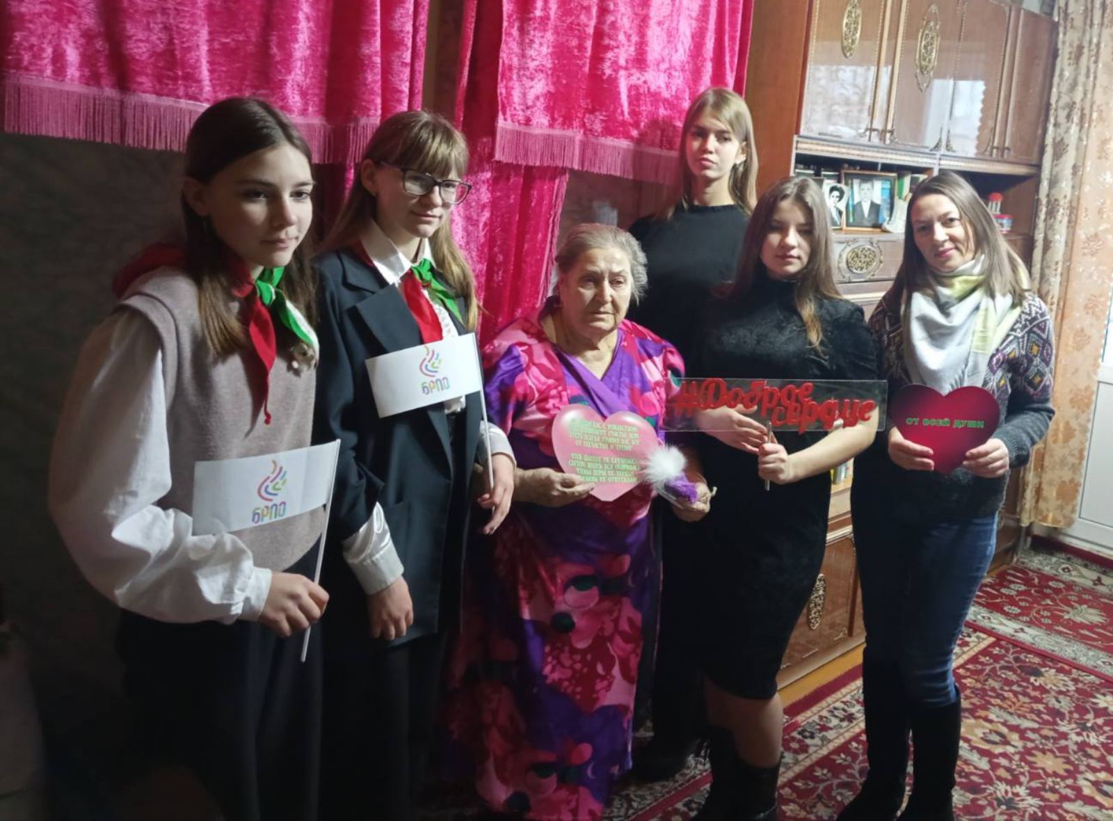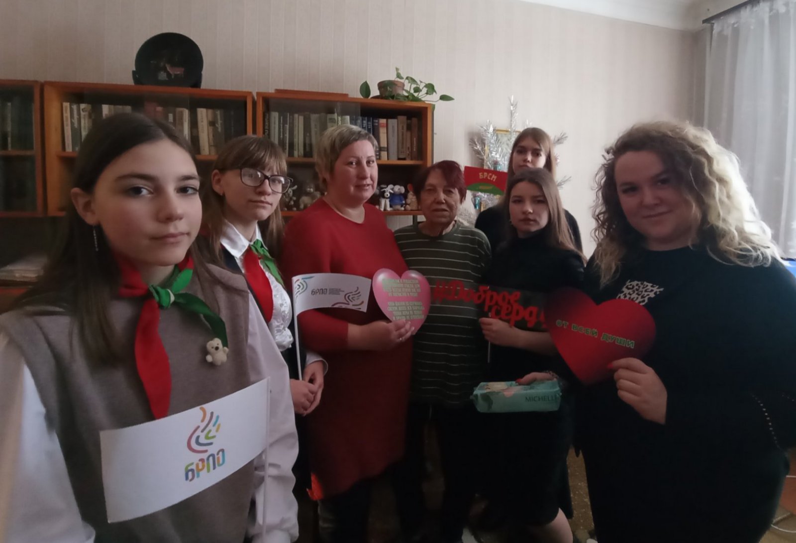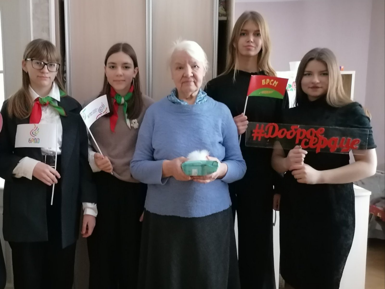В рамках Республиканской акции "От всей души" работники отделения социальный помощи на дому ГУ "ТЦСОН Полоцкого района" и активисты БРПО и БРСМ ГУО "Средняя школа номер 10 им. В.М.Азина г. Полоцка" поздравили на дому одиноких пожилых граждан с новогодними и рождественскими праздниками. Пожилые граждане встречали гостей радостно и с открытым сердцем. Встреча не обошлась без подарков, сладких презентов и пожеланий здоровья, долголетия, мирного неба над головой, а также уверенности в завтрашнем дне.
