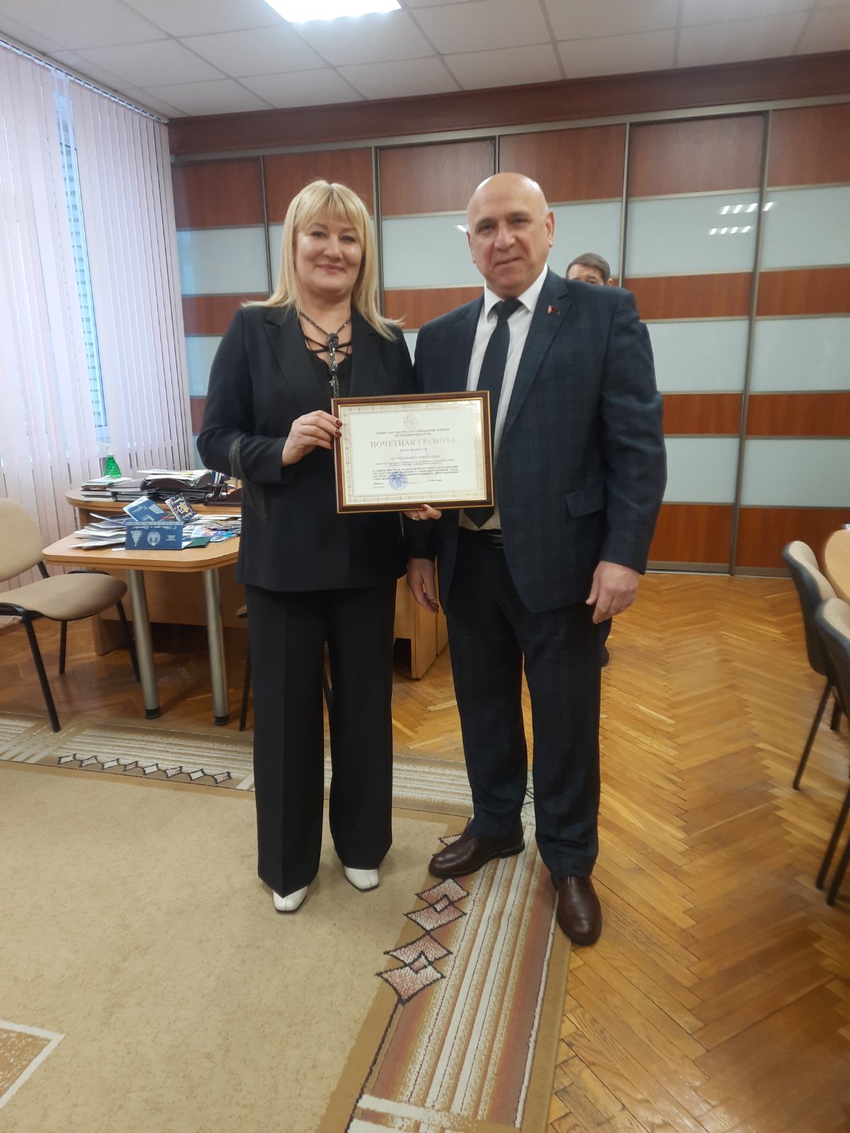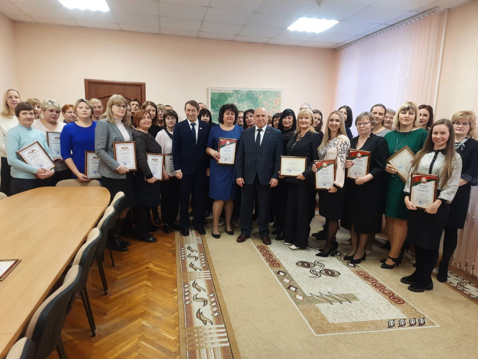 Были вручены почетные грамоты Министерства, облисполкома, комитета и благодарности председателя комитета работникам, которые показали высокий профессионализм, внесли значительный личный вклад в реализацию основных направлений и приоритетов государственной политики в социально-трудовой сфере.