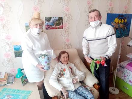 Сегодня все женщины принимают поздравления, особые слова восхищения и благодарности нашим женщинам-ветеранам. Не нарушая традиций с самого утра женщинам-ветеранам Витебского дома-интерната вручили цветы и подарки, пожелали им, как можно дольше радовать окружающих своим оптимистичным отношением к жизни, помогать младшим поколениям мудрыми советами и оставаться живым примером любви к Родине.