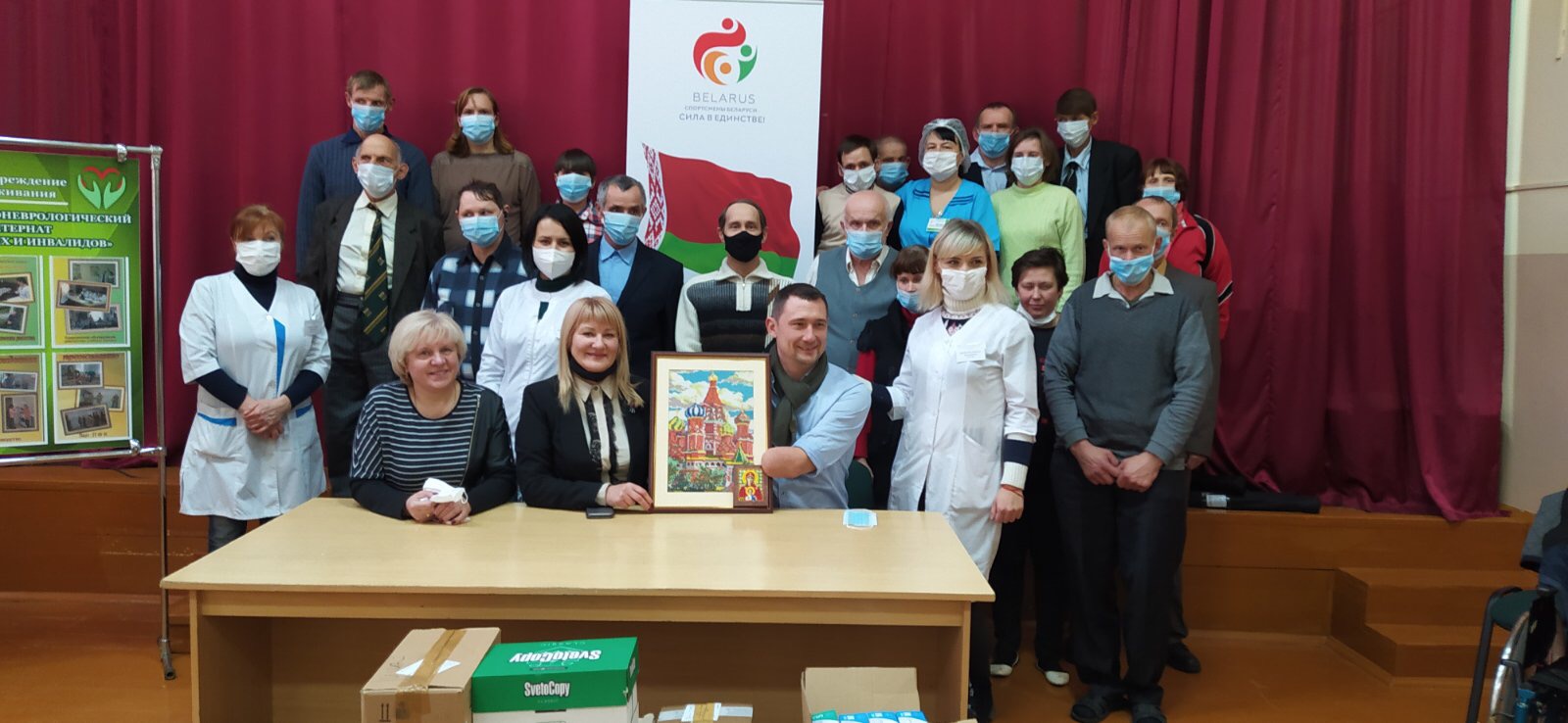 В рамках общенационального проекта «Спортсмены Беларуси – сила в единстве!» с участием комитета по труду ,занятости и социальной защите Витебского облисполкома 18 ноября 2020 года в ГУСО «Селютский психоневрологический дом-интернат для престарелых и инвалидов» состоялась встреча с предпринимателем, общественным деятелем, известным белорусским паралимпийцем, рекордсменом мира и Европы по плаванию Алексеем Талай. Его фонд при поддержке одного из организаторов и лидеров автопробега «За единую Беларусь!» Николая Зарубицкого в рамках профилактики и предотвращения распространения COVID-19 и других респираторных заболеваний пополнил запасы учреждения в виде средств индивидуальной защиты.