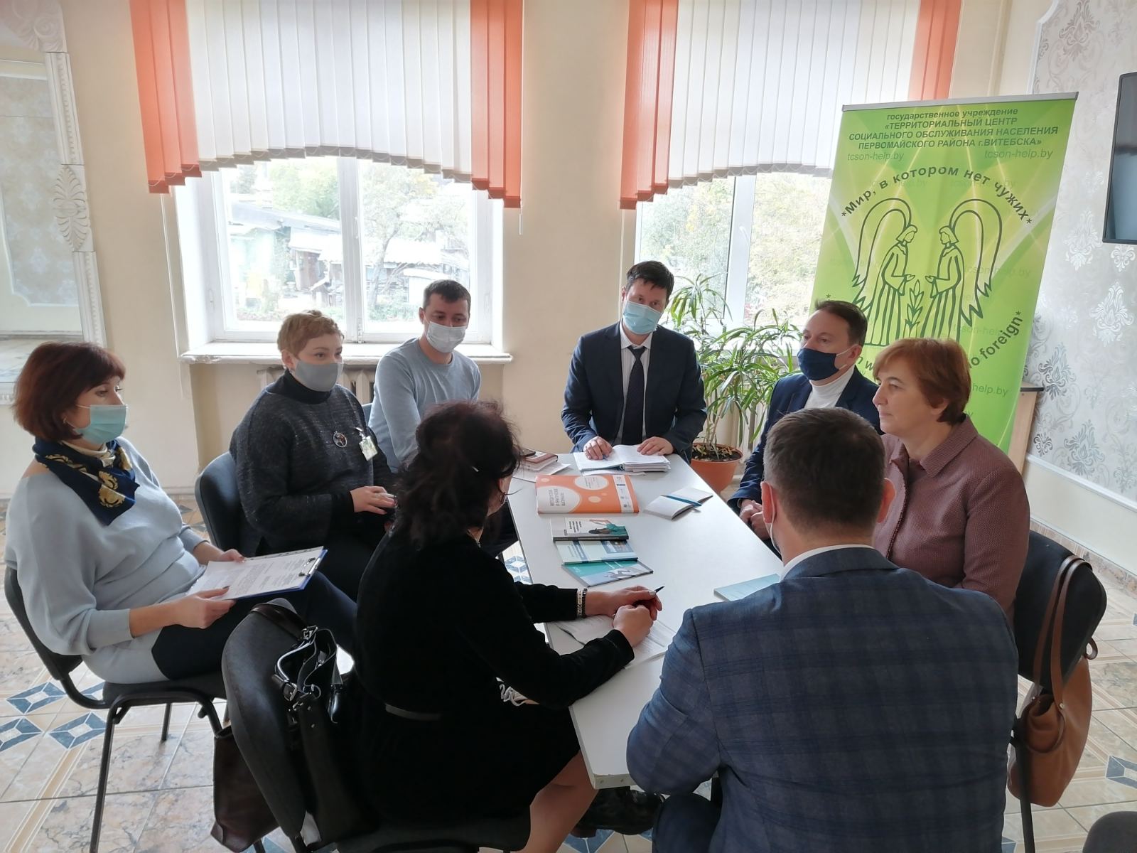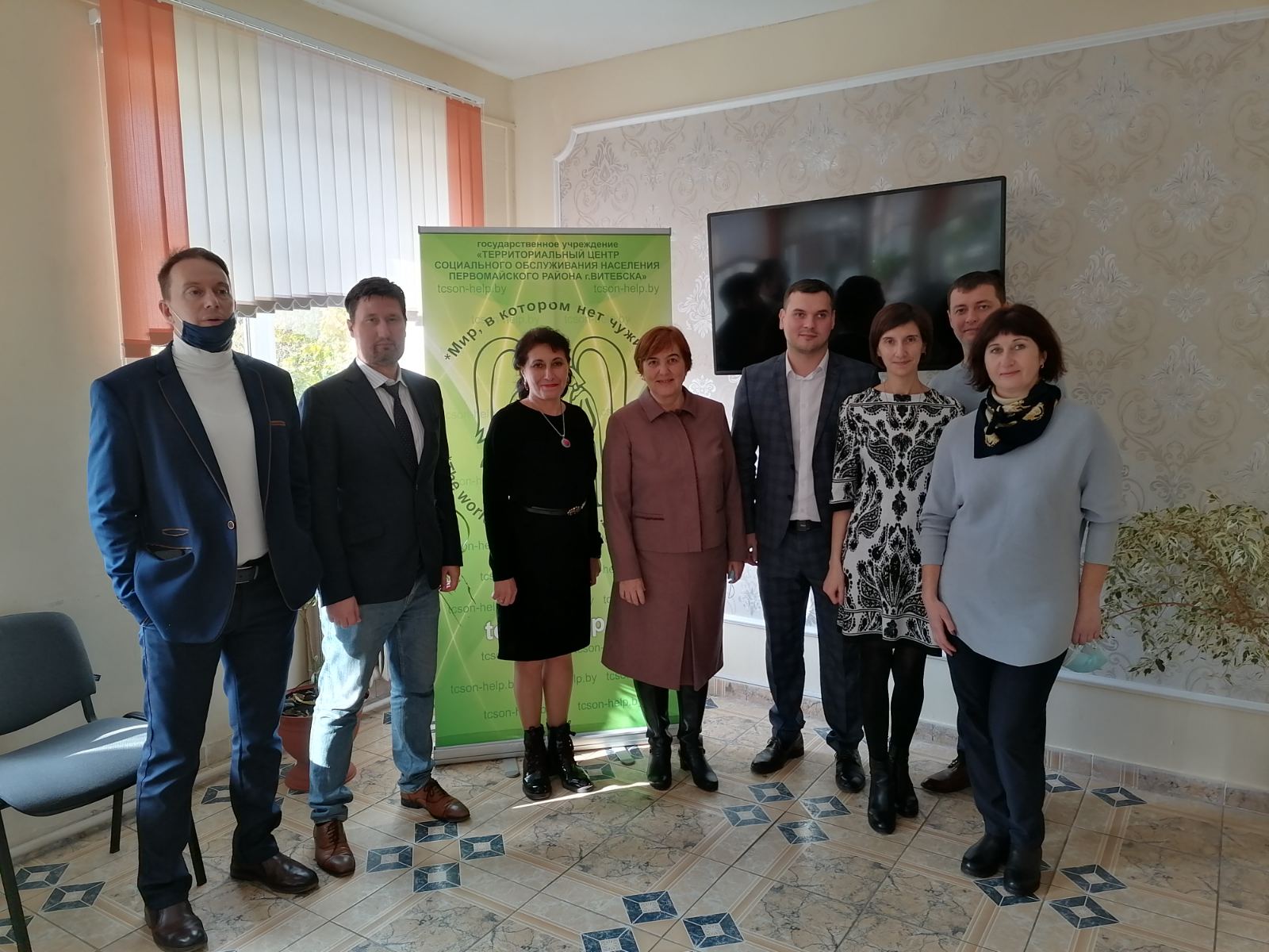 Координаторы проекта посетили ГУ «Территориальный центр социального обслуживания населения Первомайского района г.Витебска» , где состоялся «круглый стол» с участием Представителя ЮНИСЕФ в Республике Беларусь Татьяны Радачай, начальника управления социальной поддержки населения и стационарных учреждений комитета по труду, занятости и социальной защите облисполкома Сергея Каминского, директора Витебского областного ЦКРОиР Марины Федоровой, а также в «круглом столе» приняли участие сотрудники ТЦСОН Первомайского района г.Витебска и здравоохранения.