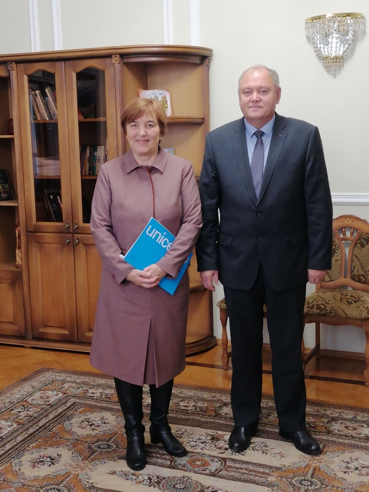 В рамках проекта «Предупреждение институционализации и деинституционализации детей раннего возраста и детей с инвалидностью в Витебской области» реализуемого в рамках межведомственного взаимодействия (комитетом по труду, занятости и социальной защите облисполкома ,главными управлениями по образованию и здравоохранению облисполкома )состоялась встреча заместителя председателя Витебского облисполкома В.П.Пенина с Представителем ЮНИСЕФ в Республике Беларусь Татьяной Радачай, на которой были обсуждены вопросы реализации проекта на территории области.