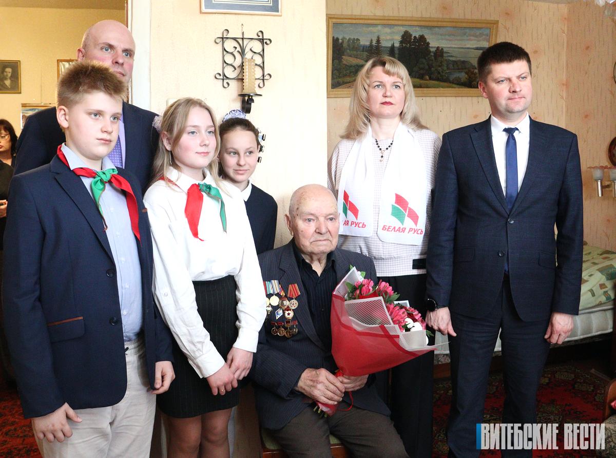 С Днем Победы ветерана Великой Отечественной войны 94-летнего Петра Романовича Масленникова поздравил на дому глава администрации Первомайского района Витебска Евгений Семёнычев и вручил материальную помощь от Президента Республики Беларусь.
