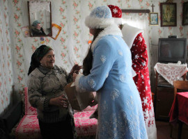 В рамках республиканской акции "От всей души» в гости к проживающим отделения круглосуточного пребывания для граждан пожилого возраста и инвалидов ГУ «Территориальный центр социального обслуживания населения Дубровенского района» пришли Дед Мороз и Снегурочка, члены БРПО и БРСМ средней школы №2 г. Дубровно им. Ю. Смирнова. Они порадовали проживающих поздравлениями, песнями, стихами и подарками.