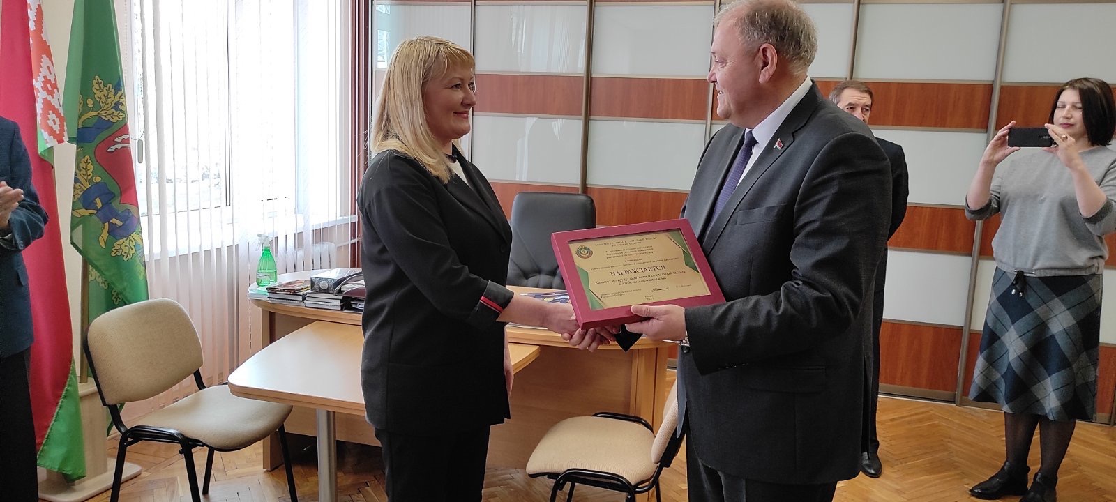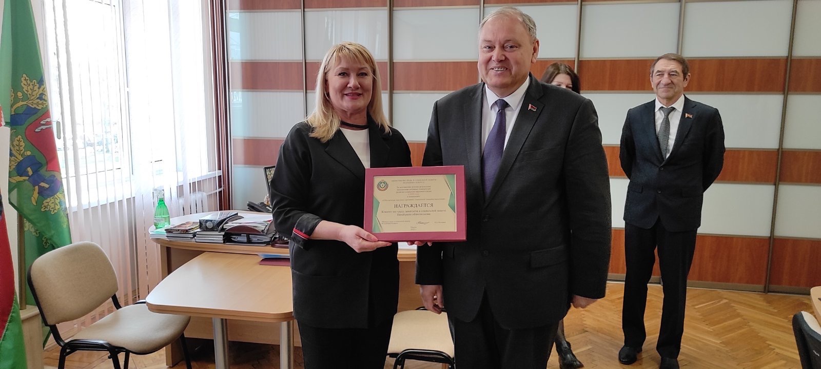 Заместитель председателя Витебского облисполкома Владимир Петрович Пенин поздравил комитет по труду, занятости и социальной защите, занявший 1 место среди комитетов республики в номинации «Обеспечение высоких гарантий социальной защиты населения».