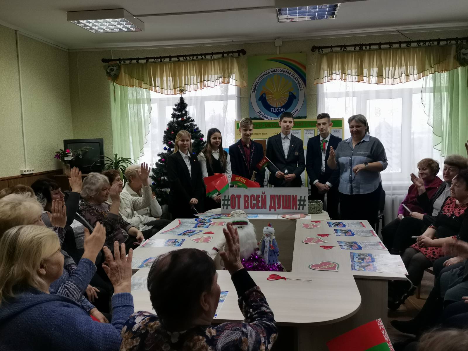 В рамках республиканской акции «От всей души» территориальный центр социального обслуживания населения Дубровенского района организовал брейн-ринг «Активная современность и мудрость поколений». В игре участвовали две команды «Молодость» - представители БРСМ, БРПО СШ № 1 им. А.Никандровой и «Мудрость» - посетители отделения дневного пребывания пожилых граждан и сопровождаемого проживания, члены Совета пожилых граждан и районного Совета ветеранов. В ответах чувствовался многолетний опыт и современная гиперактивность. Каждое поколение вспомнило свои игры, песни, танцы, любимые лакомства, но всех объединило одно – любовь к своей малой родине, своей родной Беларуси.