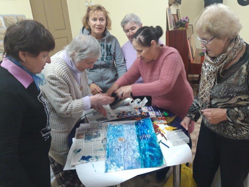 Профессиональный художник Татьяна Корчагина всегда понимала, что талантом, данным ей Богом, нужно делиться с людьми и организовала занятия по обучению живописью. Благодаря Татьяне ученики «золотого возраста» освоили уникальную технику рисования – энкаустика, оказывающую положительное воздействие на когнитивные способности пожилых людей. И на уроках вязания, которые проводит волонтер Ольга Шульгина, тоже происходит и оздоровительный эффект - улучшается общее состояние здоровья, и полезный результат работы - кофточки, шарфики, шапочки, носочки, и не только для любимых внуков.