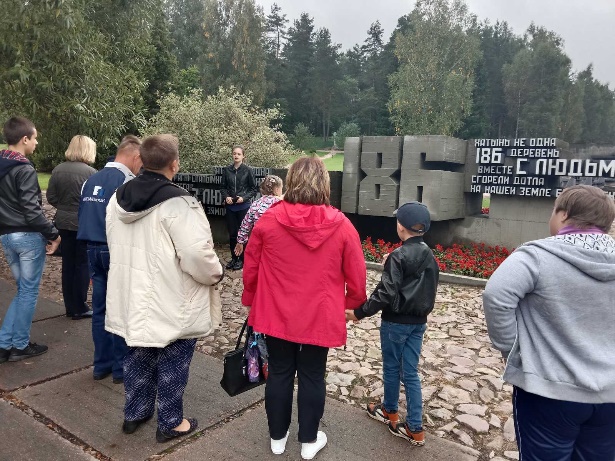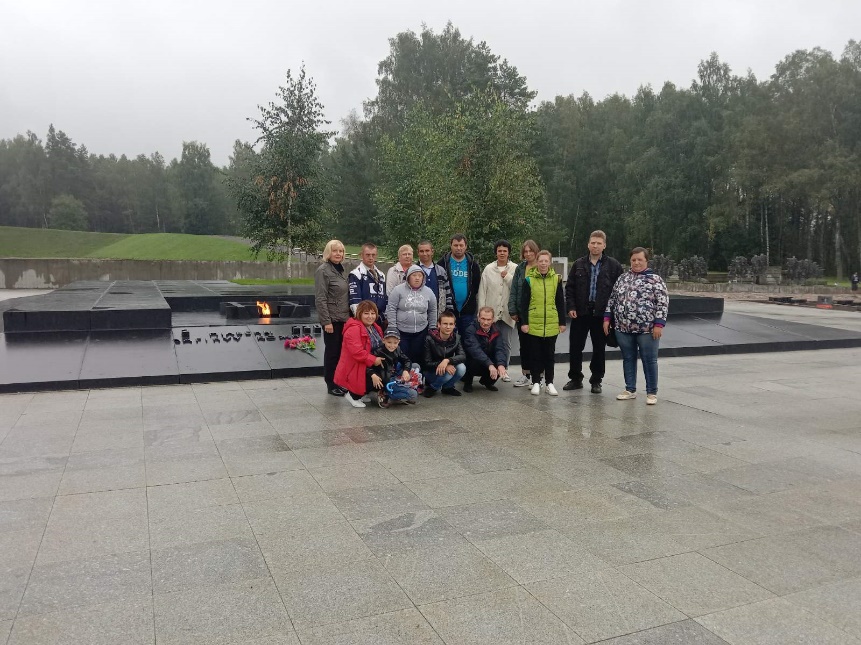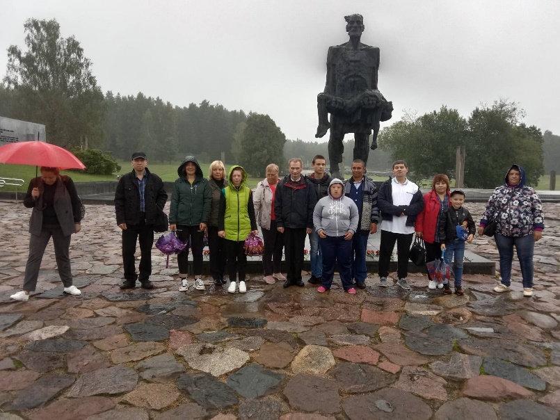 Посетители отделения дневного пребывания для инвалидов, отделения дневного пребывания для граждан пожилого возраста государственного учреждения «Территориальный центр социального обслуживания населения Бешенковичского района» Витебской области и семьи, воспитывающие детей-инвалидов в рамках мероприятия «Единство народа в героическом прошлом» посетили мемориальный комплекс «Хатынь».