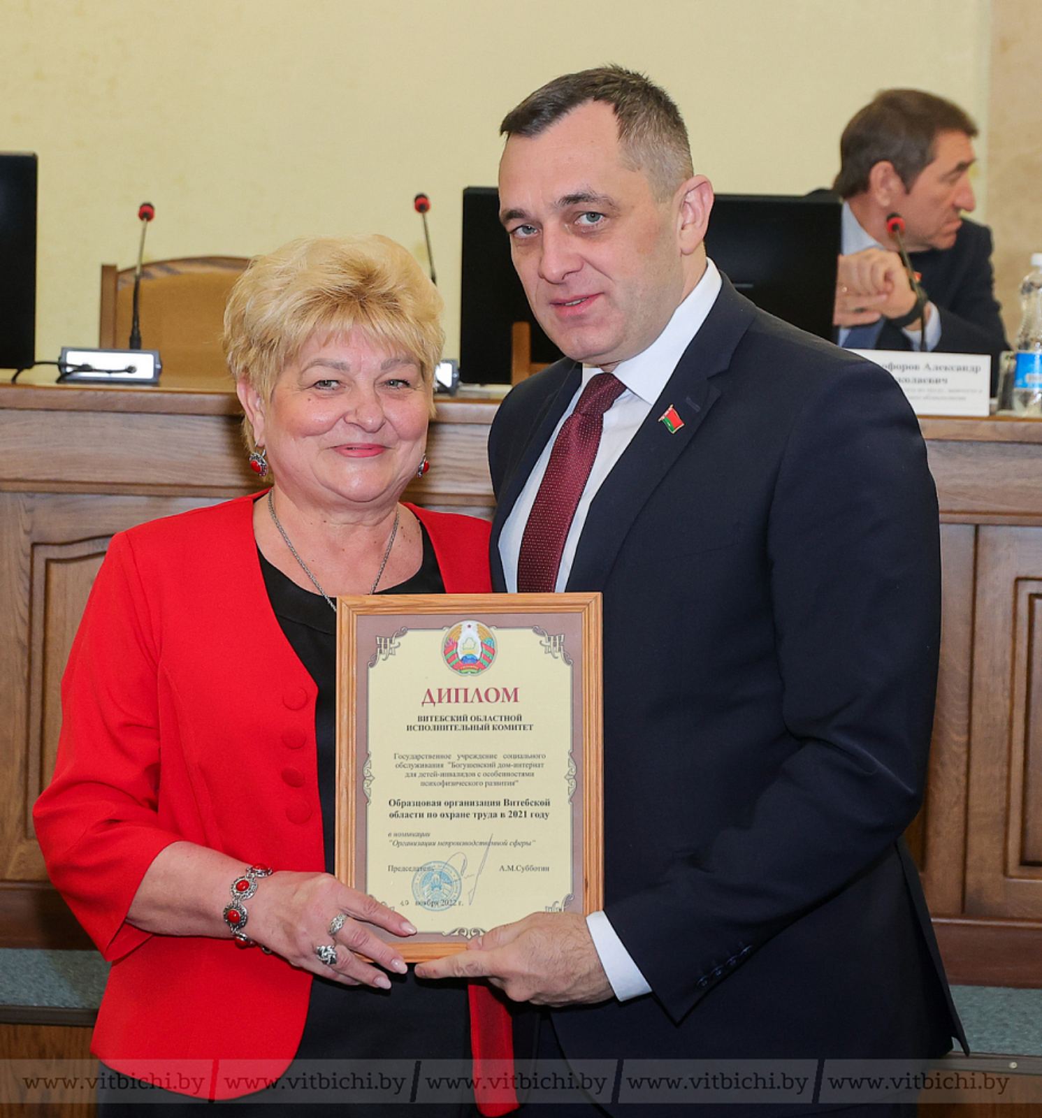 Дипломом ”Образцовая организация Витебской области по охране труда в 2021 году“ в номинации ”Организации непроизводственной сферы“ награжден Богушевский дом-интернат для детей-инвалидов с особенностями психофизического развития.