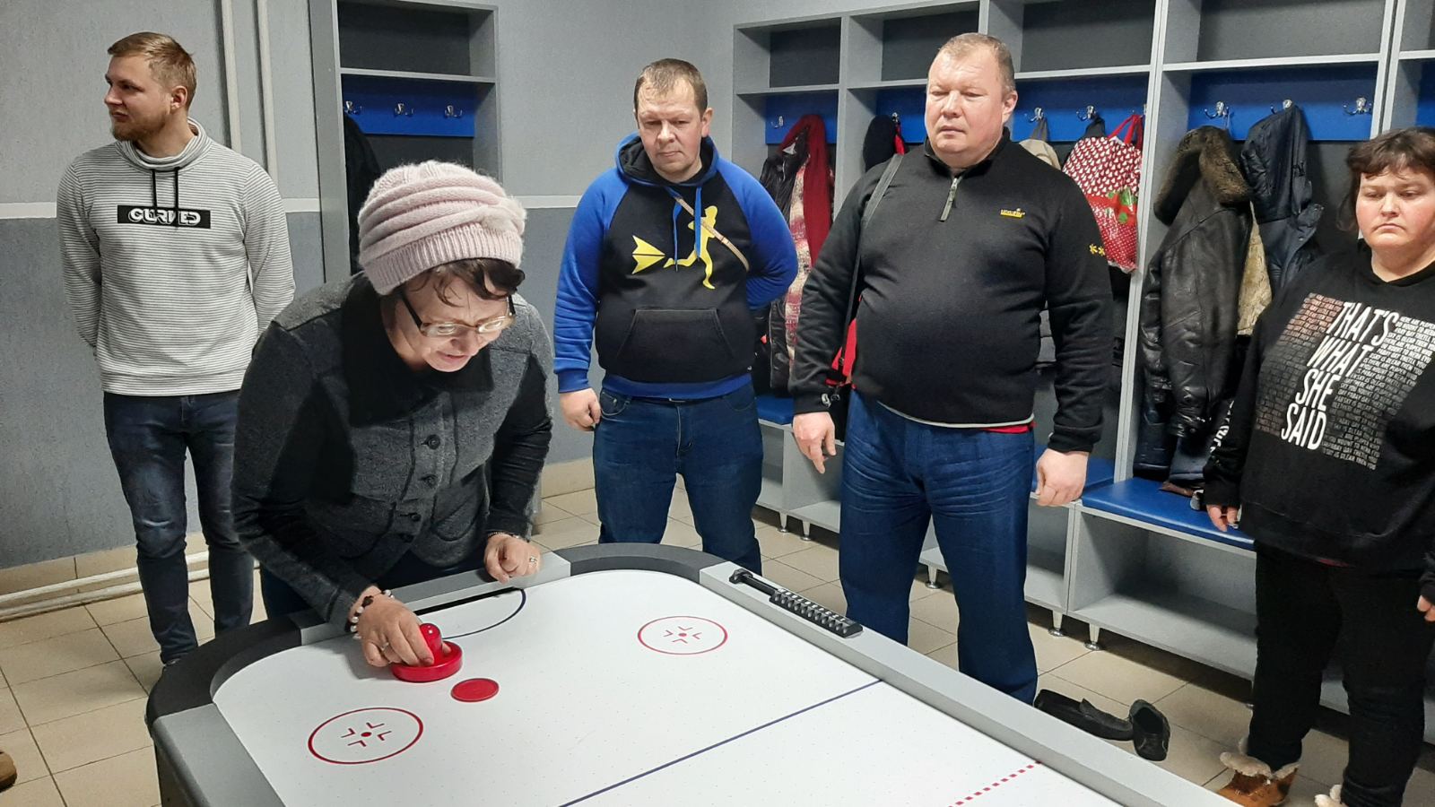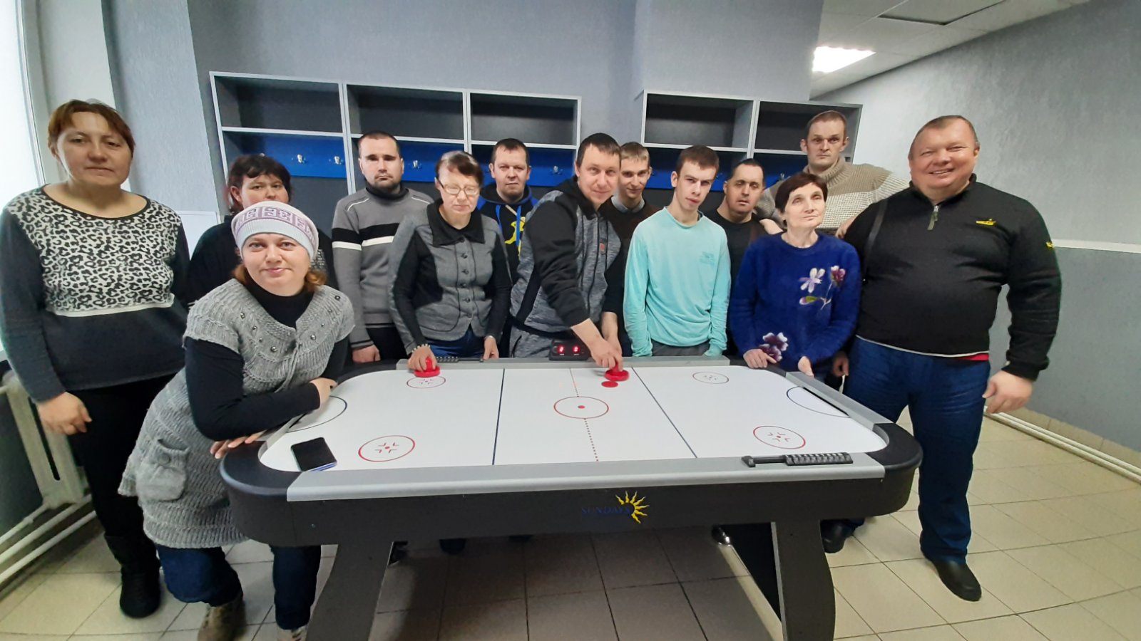 Посетители центра социально - трудовой, социально - бытовой и физической реабилитации инвалидов Лепельского района вот и реабилитируются через настольную игру- аэрохокеем.