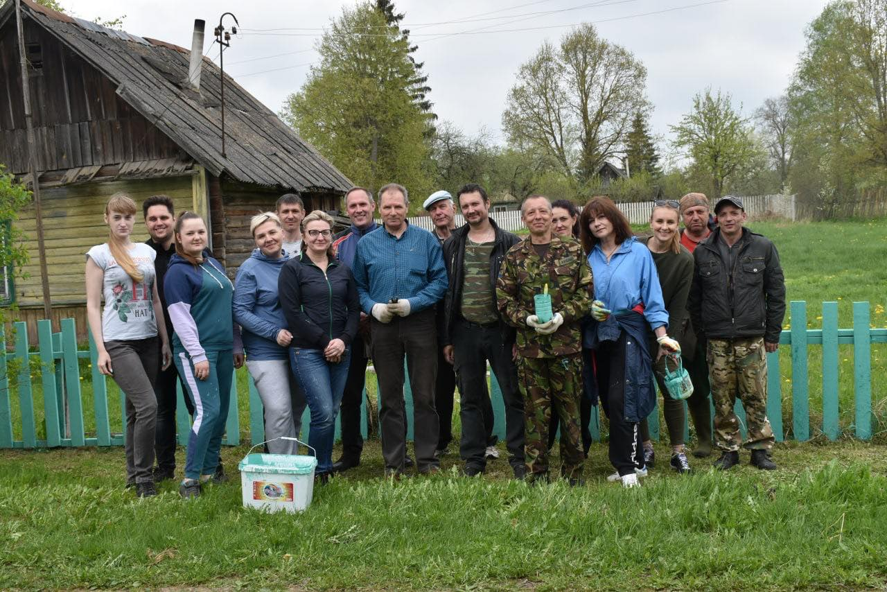 Активисты покрасили забор вдоль дороги, убрали большие ветки и мусор, скосили траву.