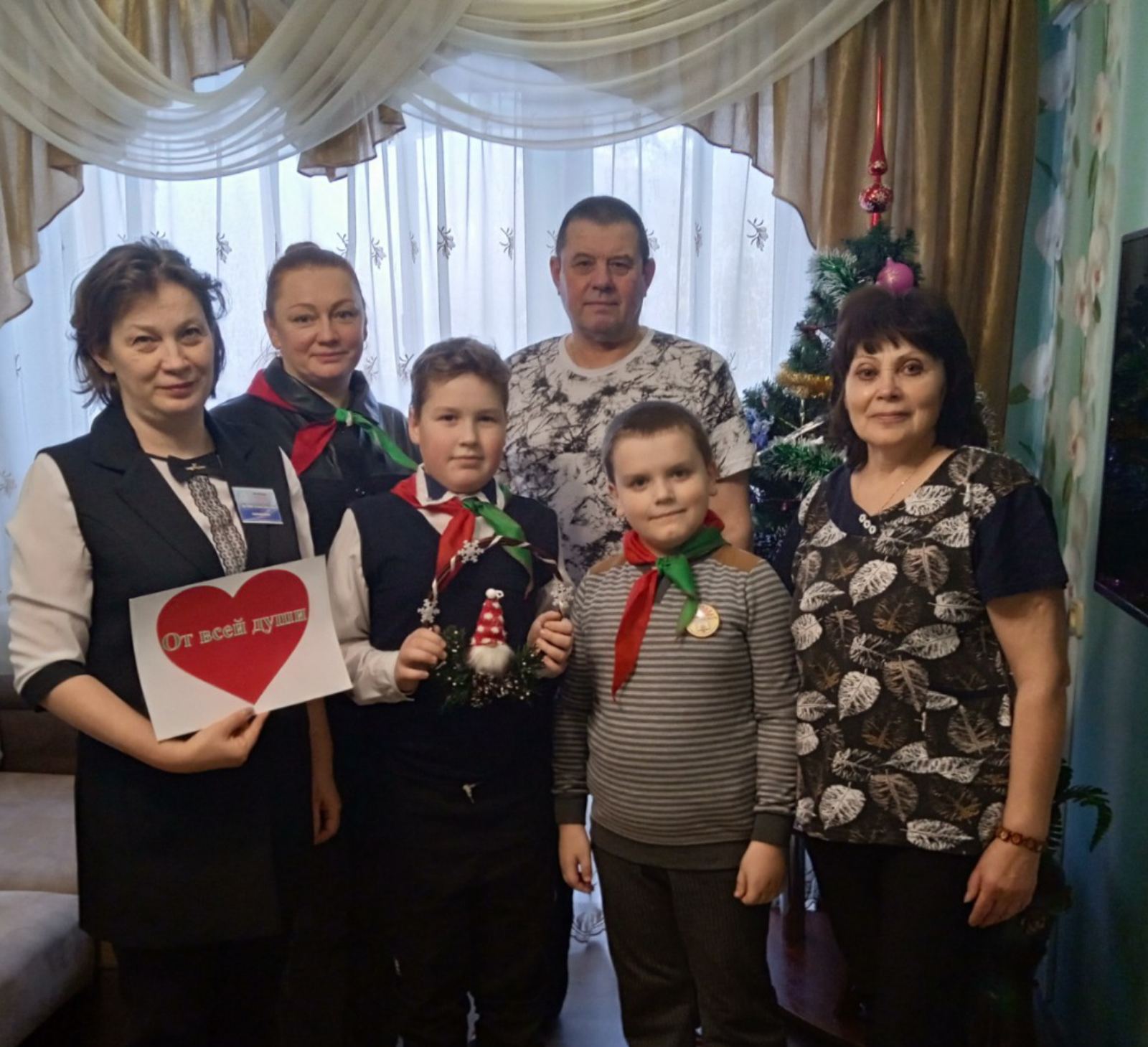 Специалисты государственного учреждения "Территориальный центр социального обслуживания населения Чашникского района " и активные пионеры "Чашникского РЦДиМ", в рамках благотворительной акции "От всей души", которая шагает в Чашникском районе с 3 января, поздравили С Новым годом и Рождеством Валерия Васильевича и Валентину Анатольевну Солдатовых.