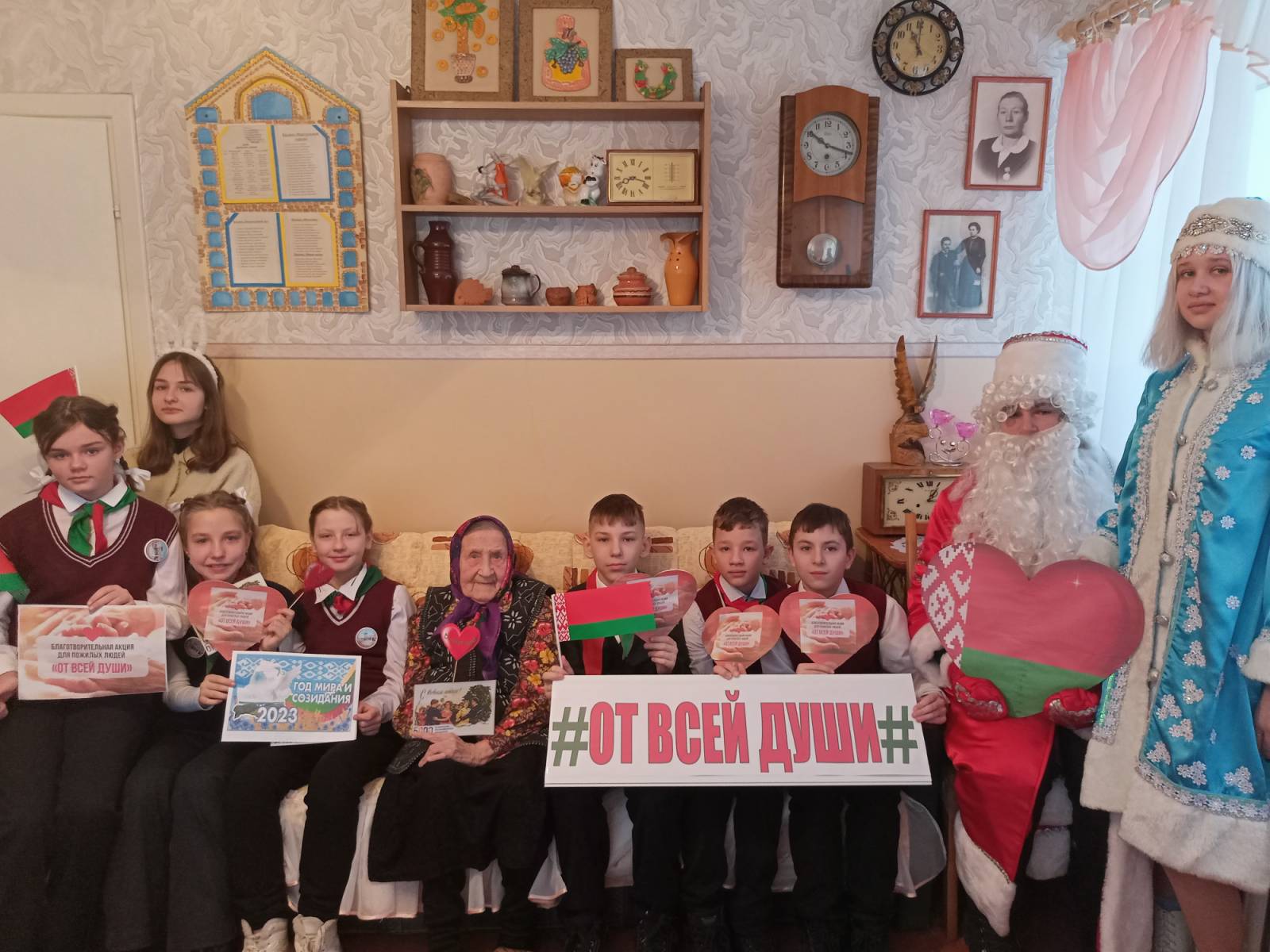 Республиканская благотворительная акция «От всей души» продолжается в Дубровенском районе. Активисты БРПО и БРСМ средней школы № 2 имени Ю.Смирнова г.Дубровно посетили отделение круглосуточного пребывания для граждан пожилого возраста и инвалидов ТЦСОН Дубровенского района и поздравили несовершеннолетнюю узницу Великой Отечественной войны Голубцову Лидию Ивановну с рождественскими и новогодними праздниками. Её рассказы о тяготах военных лет становятся для подрастающего поколения неиссякаемым опытом и мудростью, учат ценить счастье мирной жизни на родной белорусской земле. Школьники искренне поблагодарили Лидию Ивановну за подаренный мир и пожелали ей здоровья, неиссякаемой энергии и долголетия.