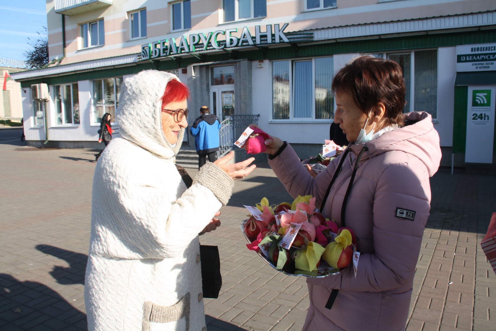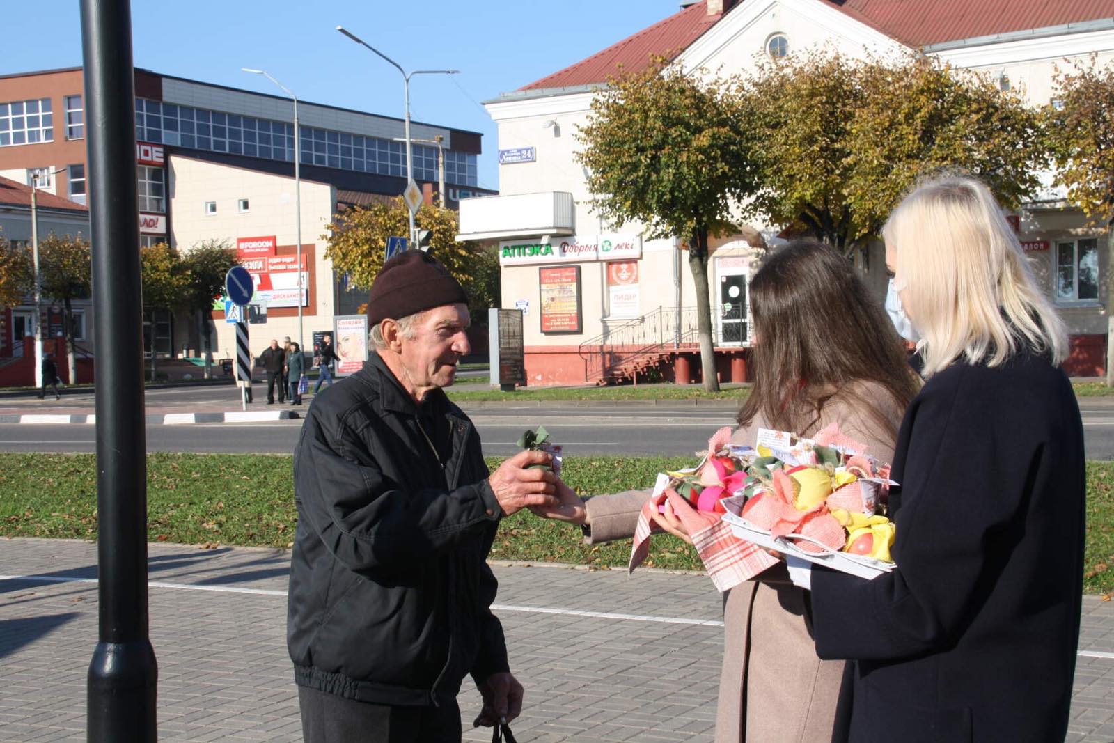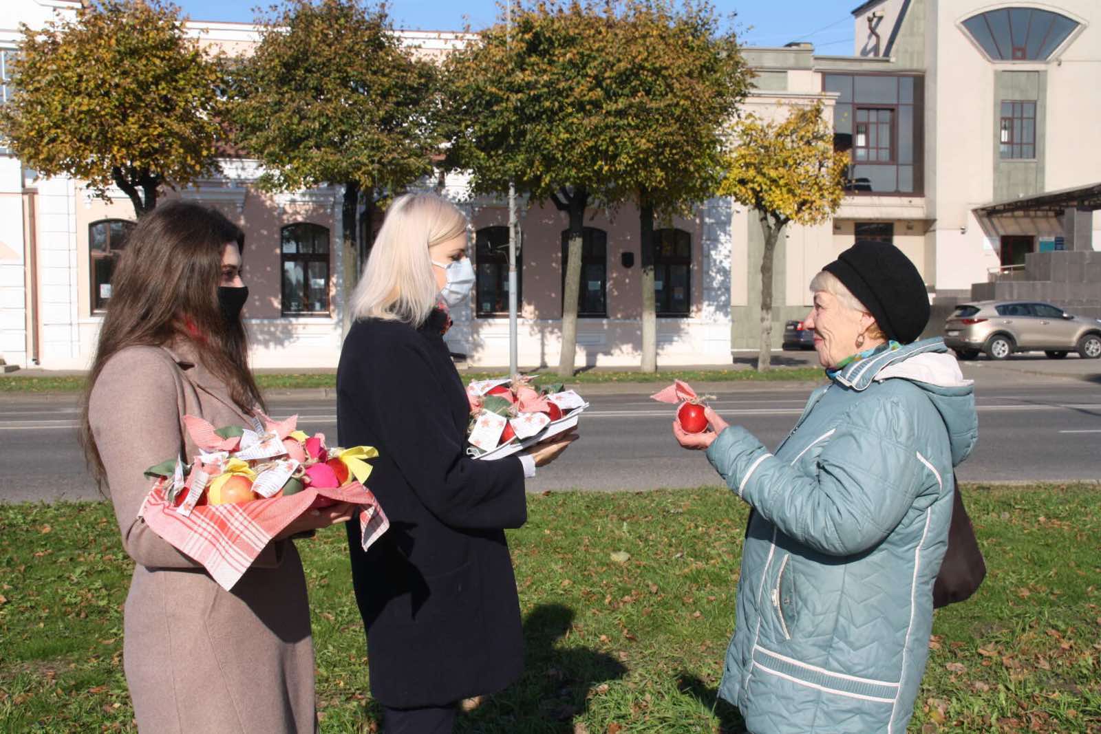 1 октября отмечается день пожилых людей. Это ещё один повод выразить свою заботу, поддержку и уважение пожилым гражданам. В связи с этим праздником, ГУ "Территориальный центр социального обслуживания населения Оршанского района" провели акцию под названием "С вниманием и заботой". Данная акция традиционно проводится в ТЦСОН с 2016 года. Специалисты Центра вышли на улицы города (площадь Ленина, ул. Держинского, аг.Бабиничи),чтобы поздравить лично каждого прохожего пожилого человека и подарить частичку своего тепла. Со словами поздравления сотрудники Центра вручали яблоки, которые задекорировали молодые инвалиды отделения дневного пребывания.