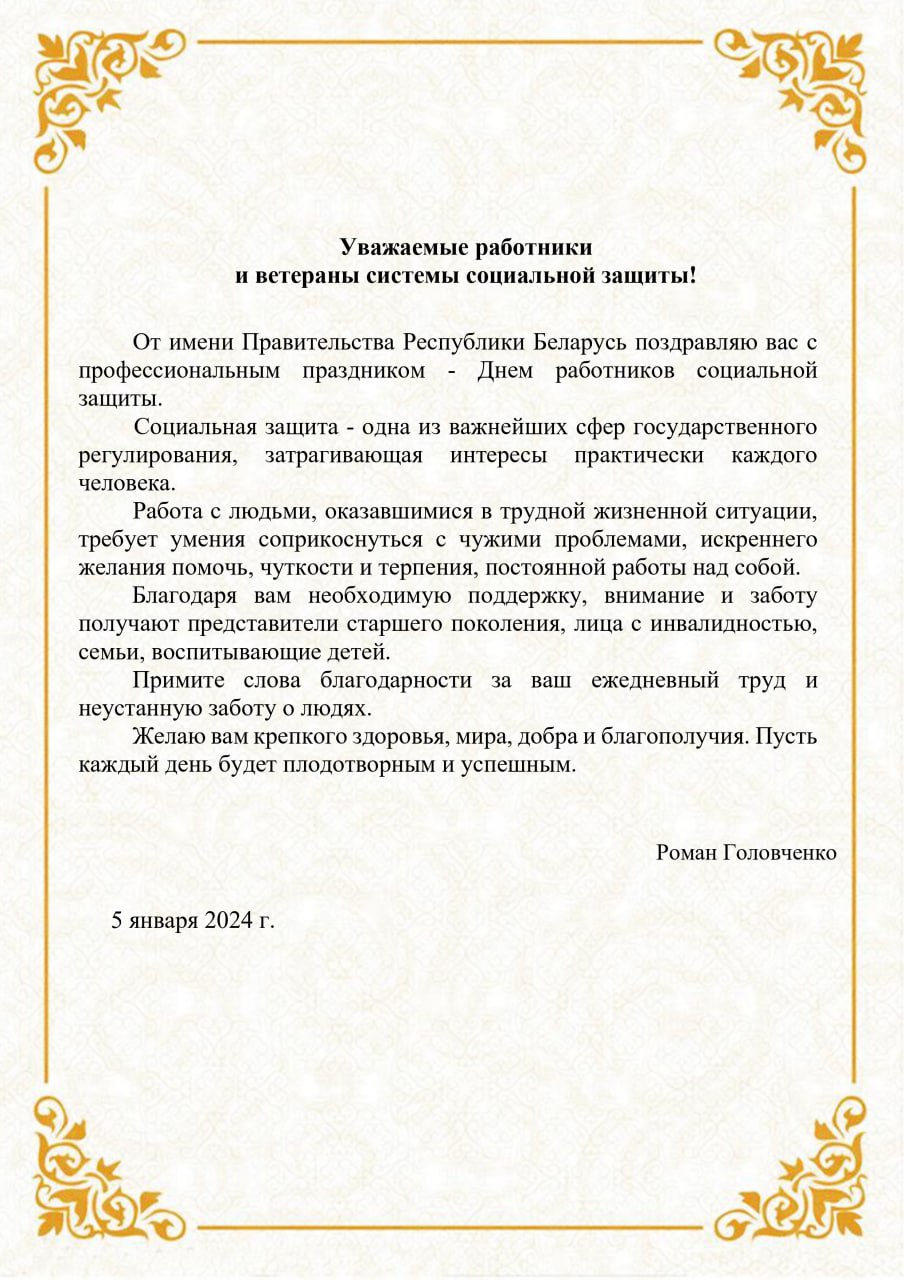 Поздравление Премьер-министра Республики Беларусь Романа Головченко