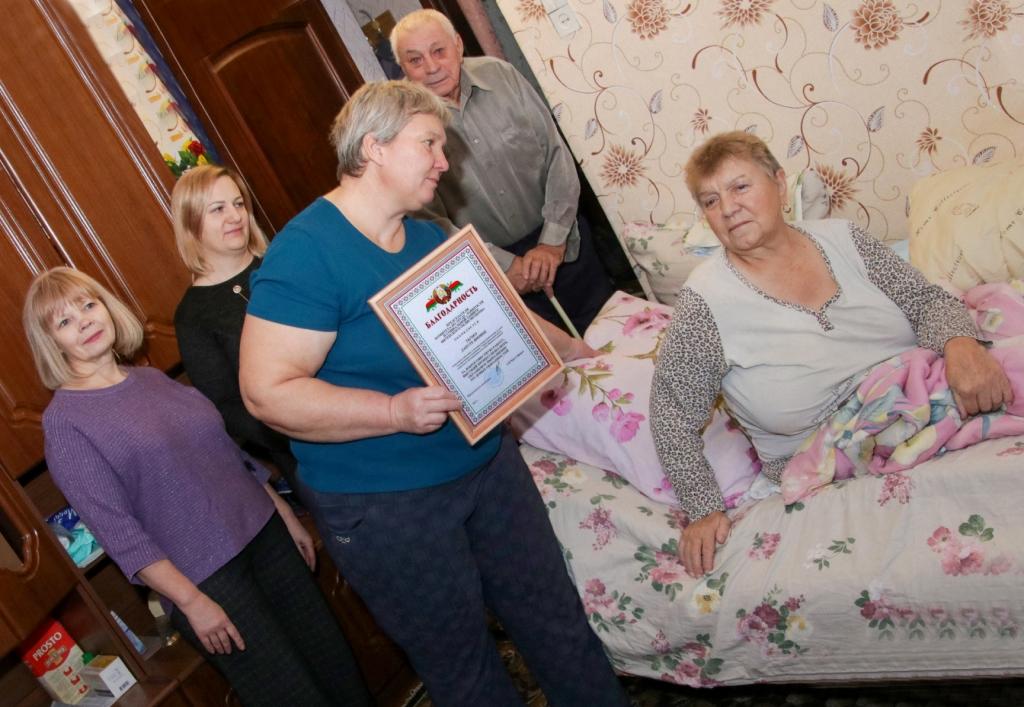 В этот день она и заведующий отделением социальной помощи на дому Кезик Е.А. встретились с лучшими социальными работниками 2022 года на их рабочих местах, на дому у обслуживаемых пожилых граждан, поздравили с профессиональным праздником, вручили грамоты и благодарности комитета по труду, занятости и социальной защиты и Миорского райисполкома, поблагодарили за добросовестный труд, безукоризненное выполнение должностных обязанностей, чуткость и отзывчивость.