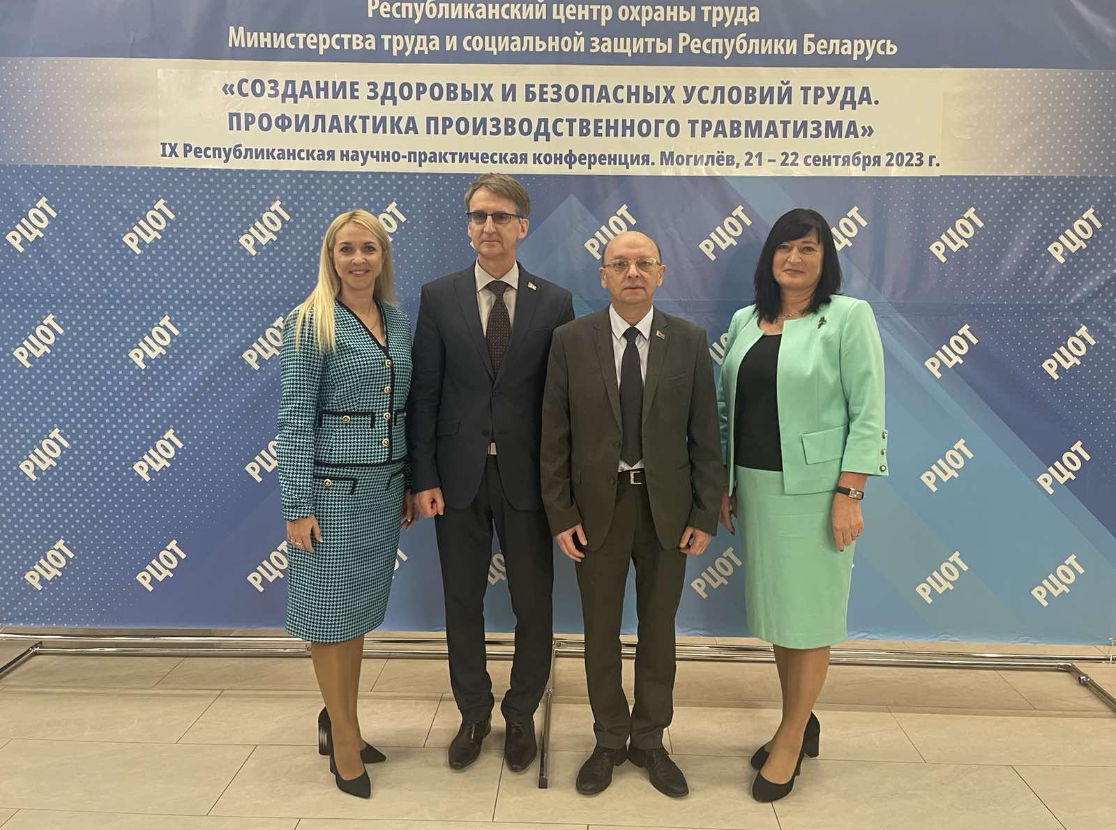 Республиканская научно-практическая конференция «Создание здоровых и безопасных условий труда. Профилактика производственного травматизма» проходит 21-22 сентября 2023 г. в г. Могилёве. В ее работе принимают участие заместитель министра труда и социальной защиты Республики Беларусь И.Г.Старовойтов, директор Департамента госинспекции труда А.В. Семич,представители всех областей страны, курирующие вопросы охраны труда, в том числе из комитета по труду , занятости и социальной защите Витебского облисполкома . На площадке конференции обсуждаются основные направления совершенствования законодательства о труде и об охране труда, вопросы создания здоровых и безопасных условий труда. Проходит выставка спецодежды и средств индивидуальной защиты. Также участники конференции посетят промышленные предприятия Могилёва, где ознакомятся с вопросами организации охраны труда. Конференция проходит в 9-й раз и собрала более 140 руководителей и специалистов предприятий Беларуси.