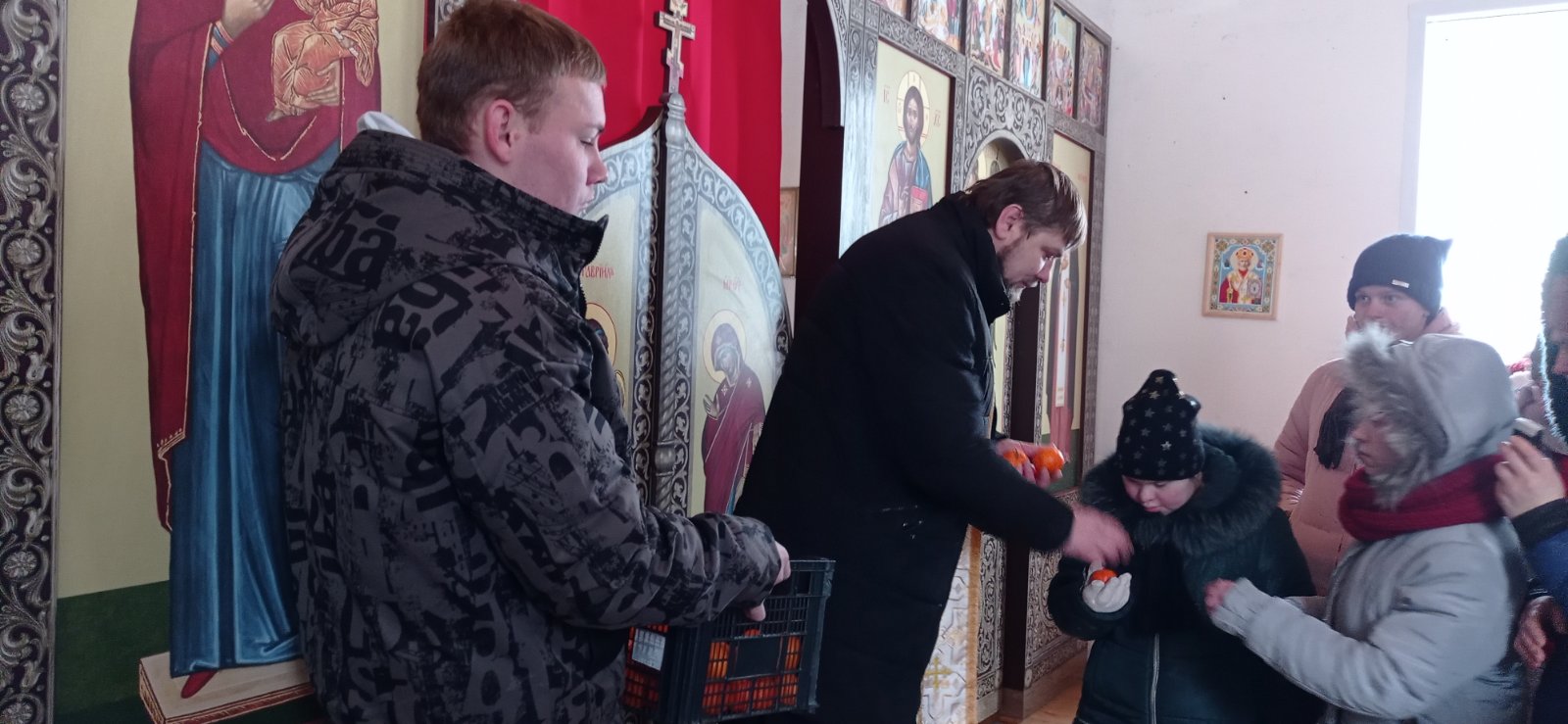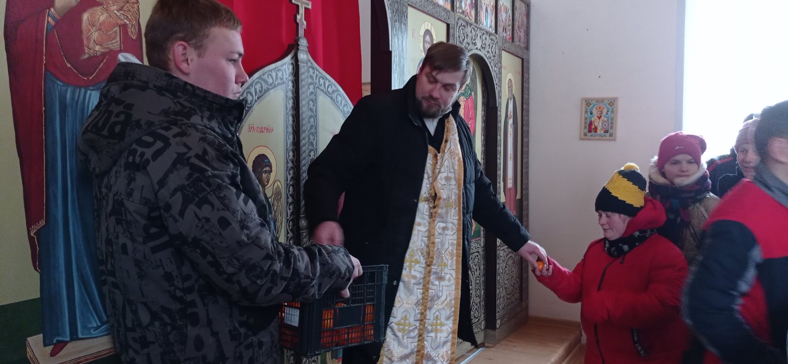 Сегодня в Богушевском доме-интернате в часовне в честь Святого Великомученика и Целителя Пантелеимона прошло рождественское Богослужение, в котором приняли участие все желающие воспитанники и сотрудники учреждения. Ведь так важно в новогодней суете остановиться и подумать о самом главном – о духовном. В песнопениях присутствующие радовались о рожденном Спасителе, а в воздухе храма витала надежда каждого на милость и благодать от Бога. Иерей Григорий храма Святых Апостолов Петра и Павла г.п.Богушевск провел молебен, и вместе с прихожанами храма угостили ребят ароматными мандаринами.