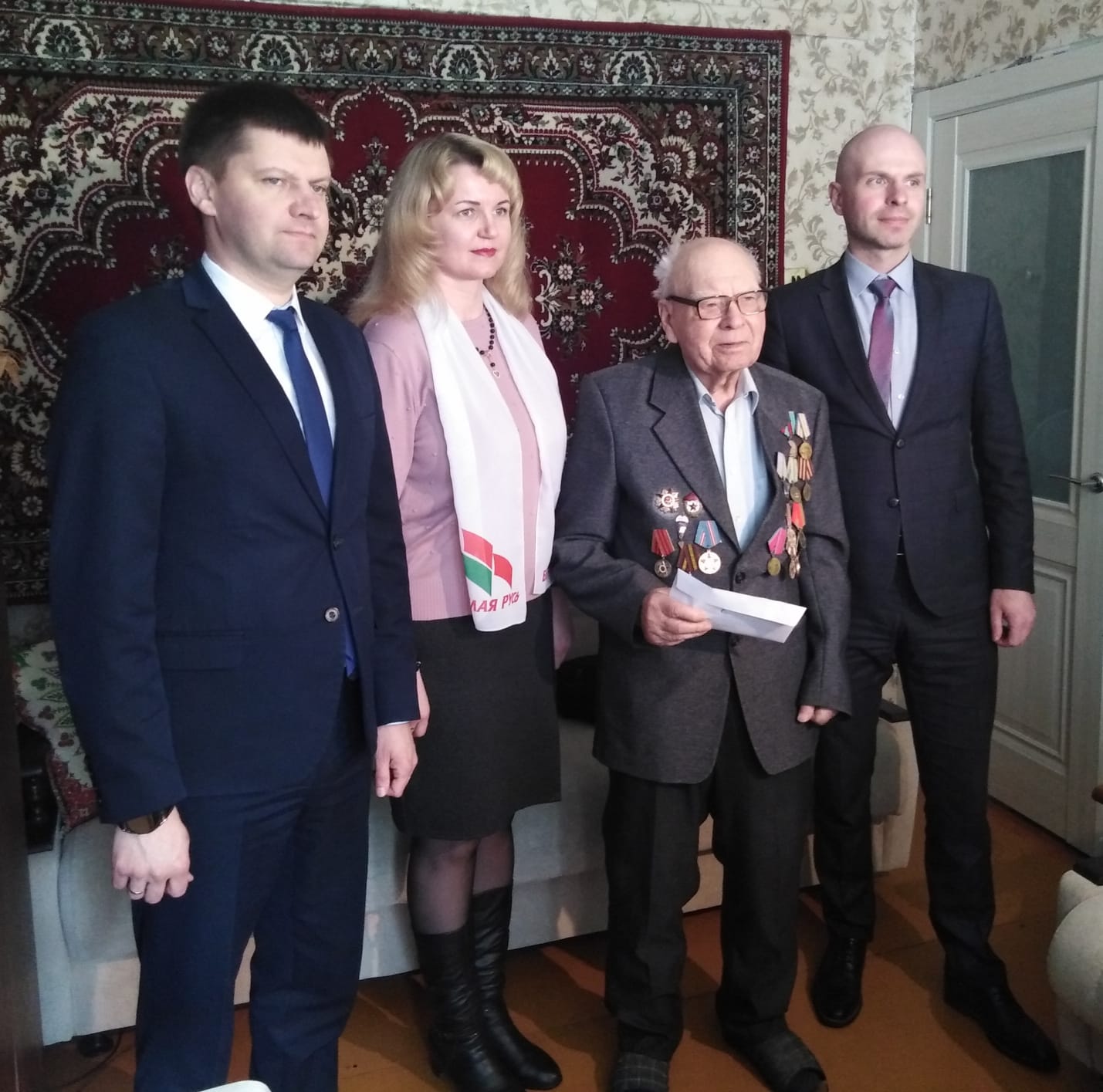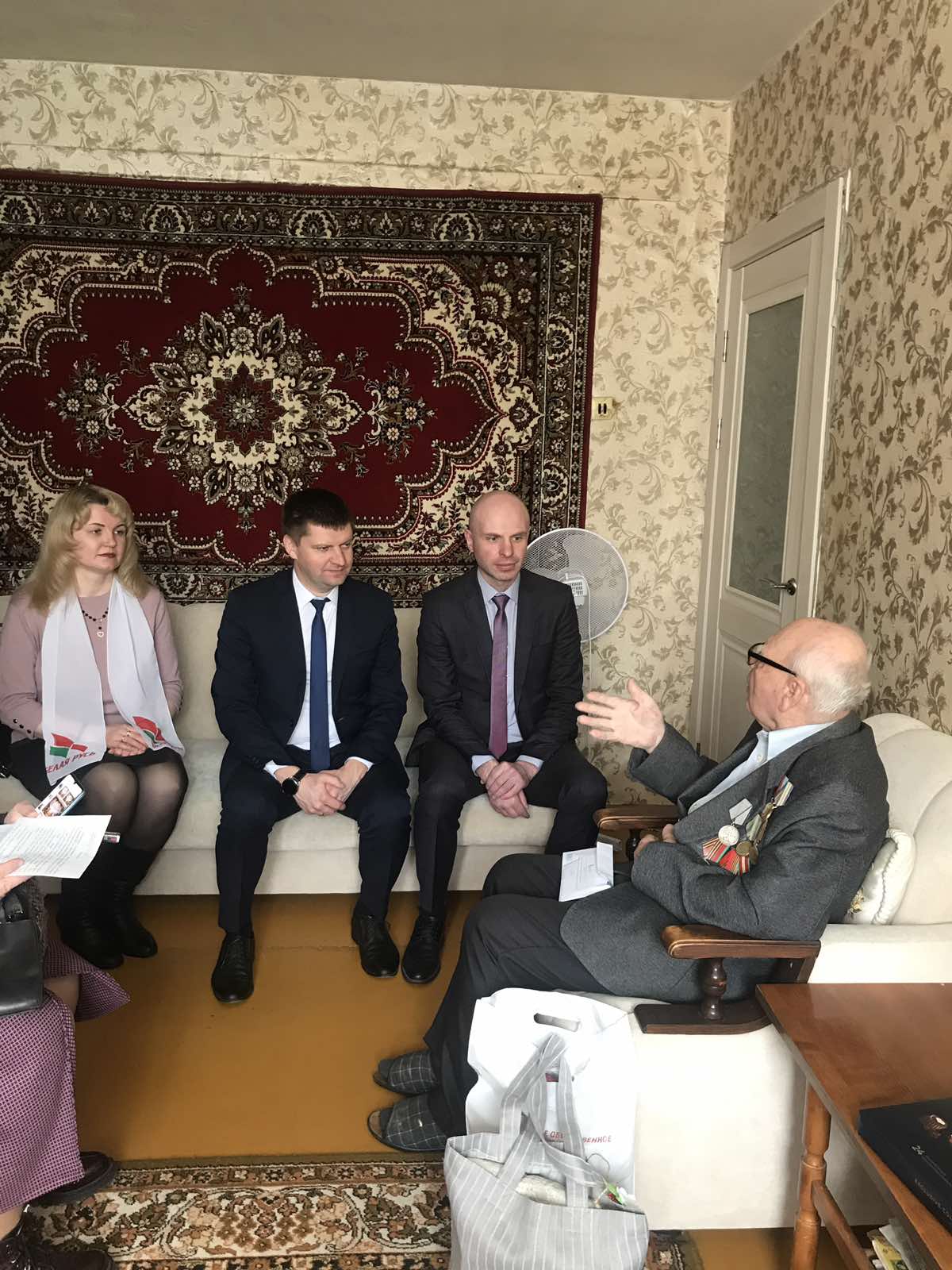 В Первомайском районе Витебска активным ходом проходят мероприятия, приуроченные к празднованию 77 годовщины Победы в Великой Отечественной войне. Так, сегодня Алецкий Роман Николаевич - рядовой, который сражался за Родину в составе 3-его Украинского фронта, награжденный Орденом Отечественной войны II степени, медалью «За отвагу», 8 юбилейными медалями, принимал у себя в гостях главу администрации Первомайского района г.Витебска Евгения Семёнычева, начальника управления социальной защиты Евгения Артамонова.