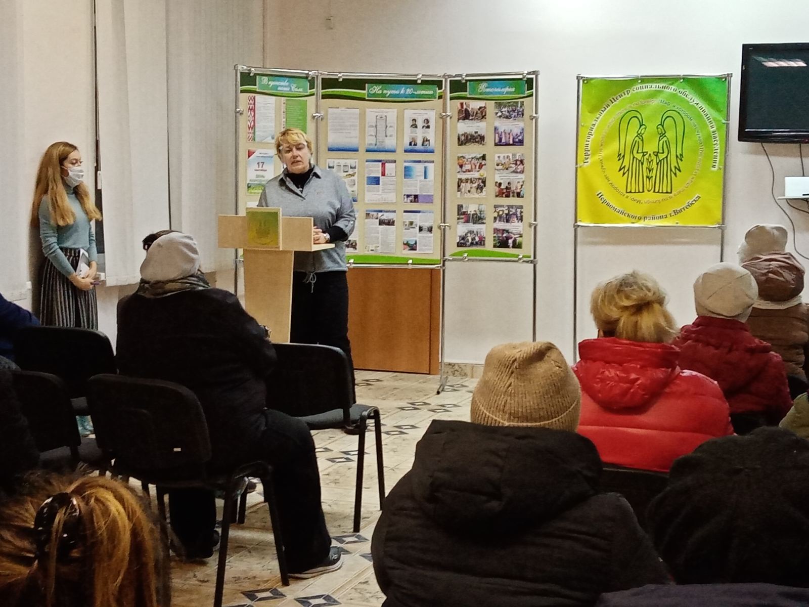 22 октября 2021 года в рамках «школы социального работника» в Территориальном центре социального обслуживания населения Первомайского района г.Витебска, проведена информационно-разъяснительная встреча о пользе вакцинации против COVID-19 с участием заведующей кафедры медицинской реабилитации и физической культуры ФПК и ПК Витебского государственного медицинского университета Оленской Татьяной Леонидовной и ассистента Азаренок Марии Константиновны.
