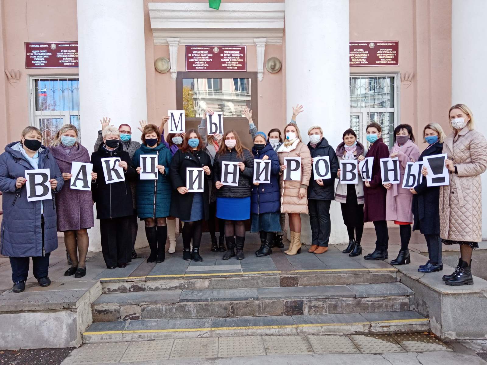 Специалисты Государственного учреждения "Территориальный центр социального обслуживания населения Витебского района"и управления по труду, занятости и социальной защите населения Витебского райисполкома приняли участие во флешмобе "Я вакцинировался.А ты?"