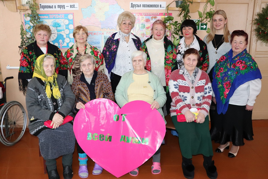 В этом году в нашей стране стартовала новая благотворительная акция для пожилых граждан «От всей души». В рамках акции прошло мероприятие в отделении круглосуточного пребывания для граждан пожилого возраста и инвалидов в деревне Дикево. В гости к мудрому поколению приехали заместитель председателя Шарковщинского райисполкома Юрий Анатольевич Василевский, председатель Германовичского сельисполкома Майя Евгеньевна Якимович, культработник сектора по нестационарным формам обслуживания населения Шарковщинского районного Центра культуры Ирина Ходаненок и любительское объединение «Душевный уют».